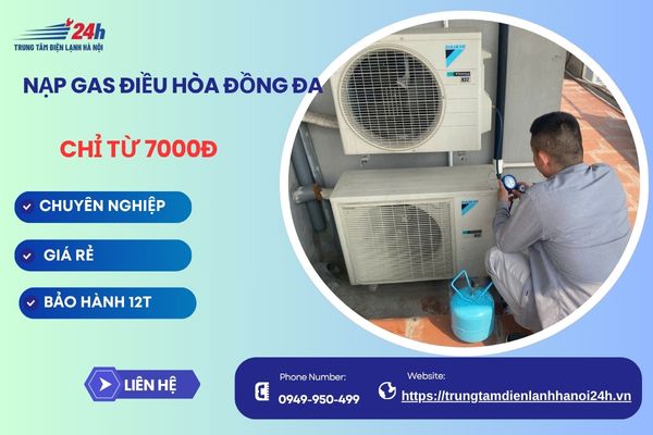 Trung tâm điện lạnh Hà Nội 24h là đơn vị tiên phong nhận được nhiều sự tin yêu của quý khách hàng tại khu vực Đống Đa. Chúng tôi luôn lắng nghe mọi đóng góp ý kiến để nâng cao trình độ bản thân. Học hỏi mỗi ngày không ngừng vươn xa hơn nữa trong các dịch vụ sửa chữa – nạp gas máy lạnh tại nhà. Khi bạn thấy điều hòa đang có những dấu hiệu cần kiểm tra, hãy liên hệ ngay tới tổng đài qua hotline: 0949950499 chúng tôi cam kết mang lại cho khách hàng một dịch vụ chuyên nghiệp – giá cả cạnh tranh tối ưu nhất khu vực.