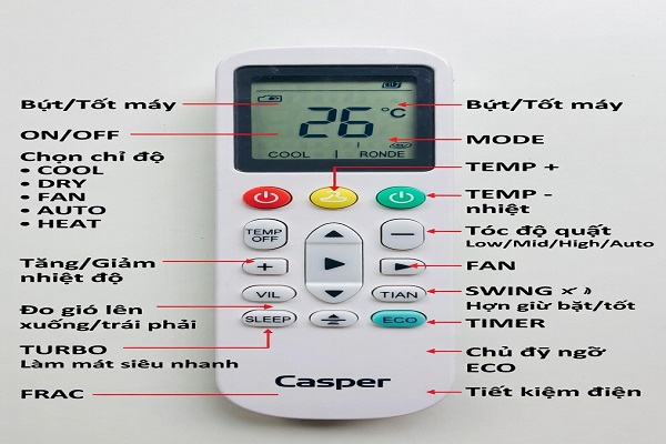 Điều khiển điều hòa Casper có những nút nào? – Điện Lạnh Hà Nội 24H