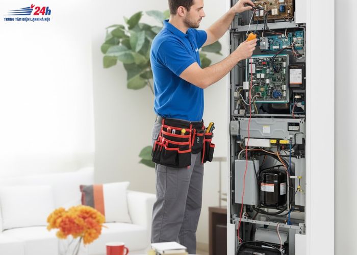 (E1, E2, E3, E4, F0, H6, U8, P4…): Mỗi mã lỗi tương ứng với một hư hỏng cụ thể trên board mạch, cảm biến nhiệt, van tiết lưu… Chỉ thợ có máy đọc lỗi mới xử lý chính xác được.