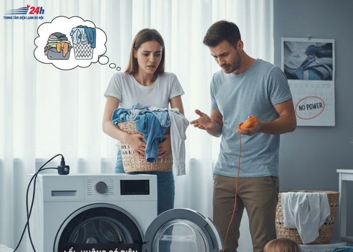 - Máy giặt không nhận tín hiệu, không có bất kỳ phản hồi nào khi cắm điện.
