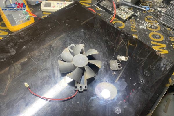 • Kết hợp vệ sinh quạt gió, lưới tản nhiệt, bôi keo tản nhiệt mới cho sò công suất (giúp bếp bền hơn, tránh lỗi quá nhiệt E5).