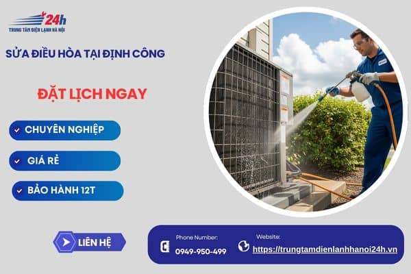 Với dịch vụ sửa máy lạnh tại Định Công chúng tôi luôn túc trực bất cứ thời gian nào khách hàng liên hệ tới qua Hotline: 0949.950.499 để được hỗ trợ và có những phương án khắc phục hiệu quả nhất!
