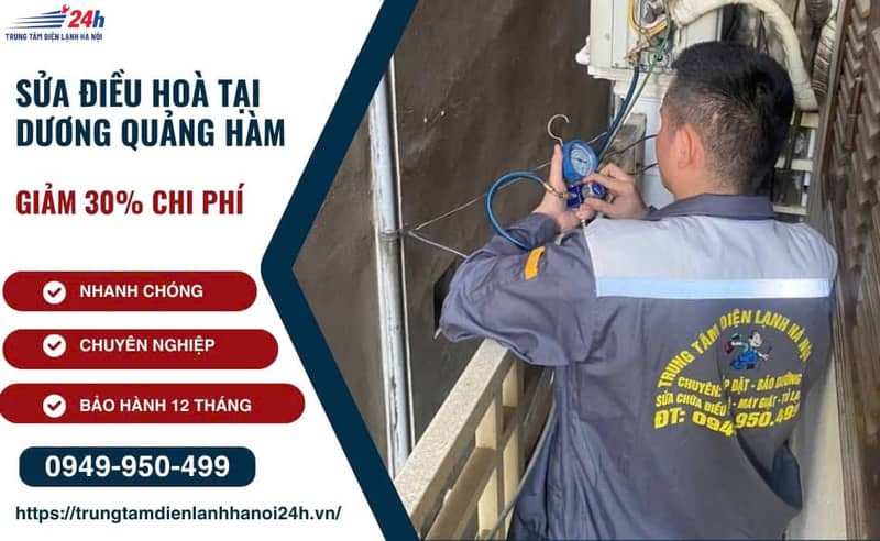 Dịch vụ sửa điều hòa tại Dương Quảng Hàm của trung tâm điện lạnh Hà Nội 24h của chúng tôi luôn thể hiện sự chuyên nghiệp và mang tới sự hài lòng nhất. Chúng tôi cam kết sẽ tối ưu mọi chi phí sửa chữa giúp khách hàng có thể tiết kiệm được một phần.