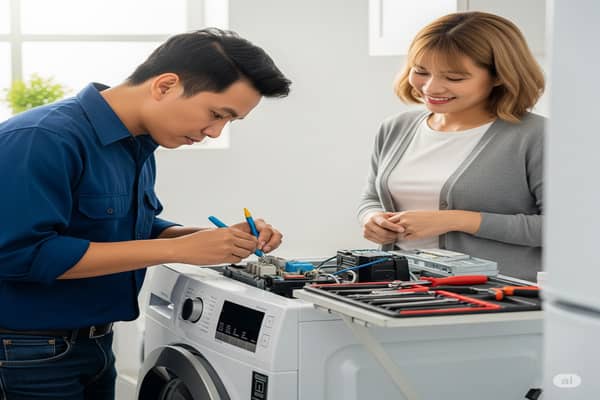 Kỹ thuật viên sửa máy giặt của chúng tôi sẽ tiến hành kiểm tra kỹ lưỡng toàn bộ thiết bị, từ các linh kiện nhỏ nhất đến bo mạch điều khiển, để xác định chính xác nguyên nhân và mức độ hư hỏng. Sau đó, chúng tôi sẽ đưa ra phương án sửa chữa máy giặt tối ưu và báo giá chi tiết, minh bạch, đảm bảo bạn nắm rõ mọi khoản chi phí trước khi bắt đầu công việc.
