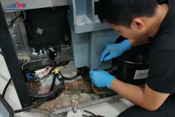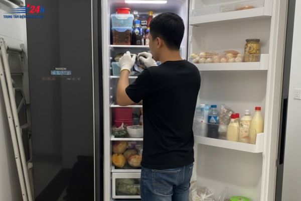 - Kiểm tra khay hứng nước phía sau tủ (dưới dàn lạnh hoặc gần block): đổ nước đọng, lau sạch để không bị mùi và muỗi.