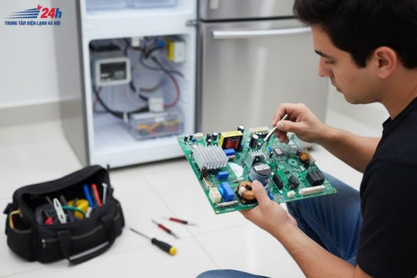 - Bảng mạch điện tử bị lỗi khiến tủ lạnh không hoạt động.